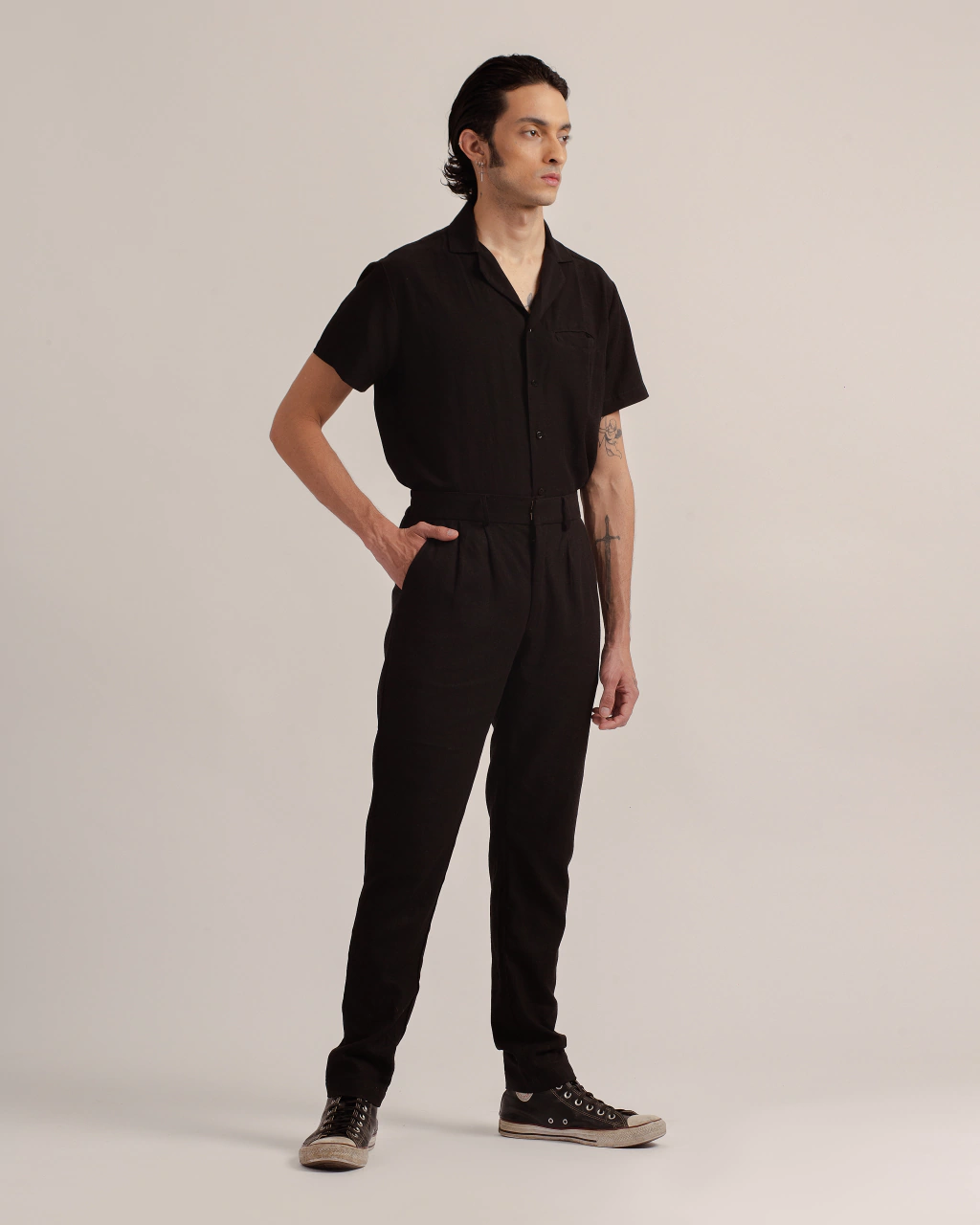 Camisa na cor preta em algodão (68%), viscose (17%) e linho (15%). Todas as nossas peças são confortáveis para serem usadas tanto por homens quanto por mulheres.