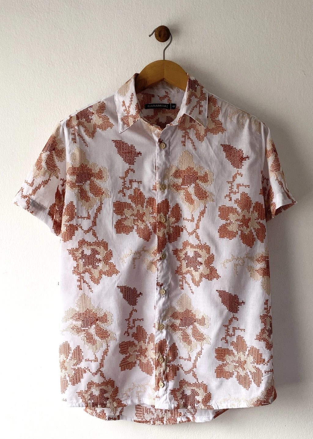 Camisa em tecido 100% algodão na cor branca com bordado em linha de poliéster em tons de marrom. Todas as nossas peças são confortáveis para serem usadas tanto por homens quanto por mulheres.